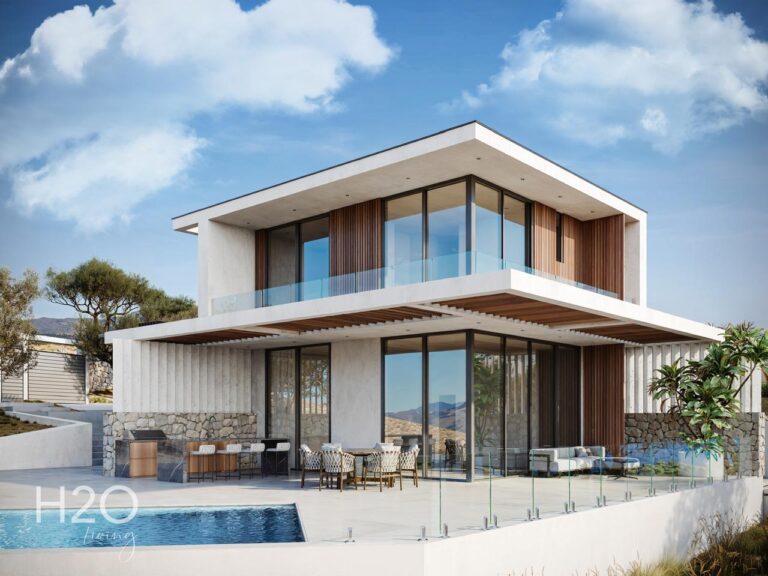 This Double-Level Villa is situated on a 520 m² plot and features an open-plan living area, a modern kitchen with a fully equipped island, a dining area, two bedrooms, and two bathrooms, along with a guest toilet. Large, modern, furnished terrace offers a shaded and private area for outdoor relaxation. With balcony access from the second-floor bedrooms, you can enjoy the outdoors from all of the living spaces. The varying elevations ensure privacy and offer panoramic sea views, and the crowning feature is a large swimming pool.